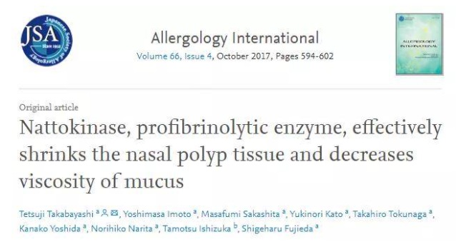 長期にわたる炎症は、鼻粘膜へのフィブリンの過剰な沈着を引き起こし、慢性副鼻腔炎の原因の一つであり、鼻茸の形成も促進します。日本の研究者らの研究結果によると、ナットウキナーゼはフィブリンを分解し、鼻茸の組織を効果的に縮小させることが示されています。また、慢性副鼻腔炎患者と喘息患者の鼻水と痰の粘度は、ナットウキナーゼ溶液中で培養後、それぞれ有意に低下することが確認されました。