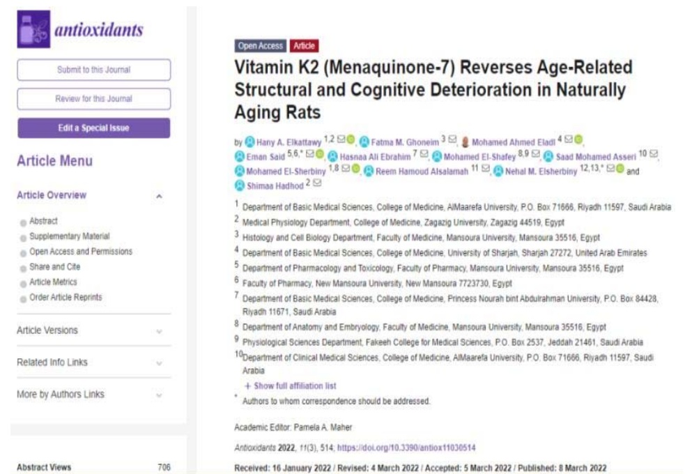 ラットを用いた新たな研究で、ビタミンKがアルツハイマー病やその他の認知症に伴う認知機能の低下を予防するのに役立つというエビデンスが報告されました。この研究は、2022年3月8日にAntioxidants誌に掲載されました。